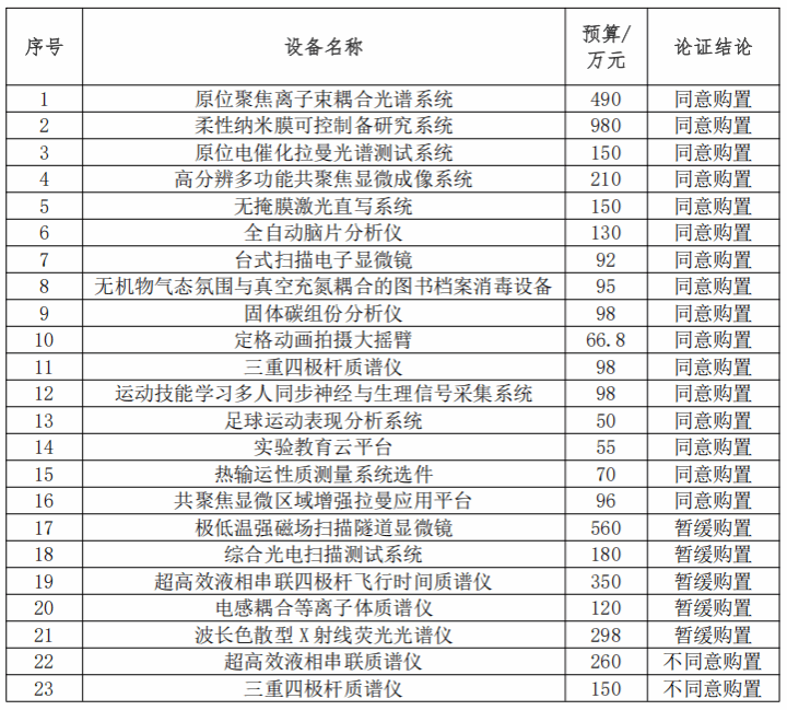 为规范大型科研仪器的购置管理工作,提高仪器设备使用效率,根据《陕西师范大学大型科研仪器购置论证管理办法》(陕师校发〔2020〕117号),经学院审核、专家论证并报大型科研仪器购置论证领导小组审批,形成以下论证结论,现予以公示: